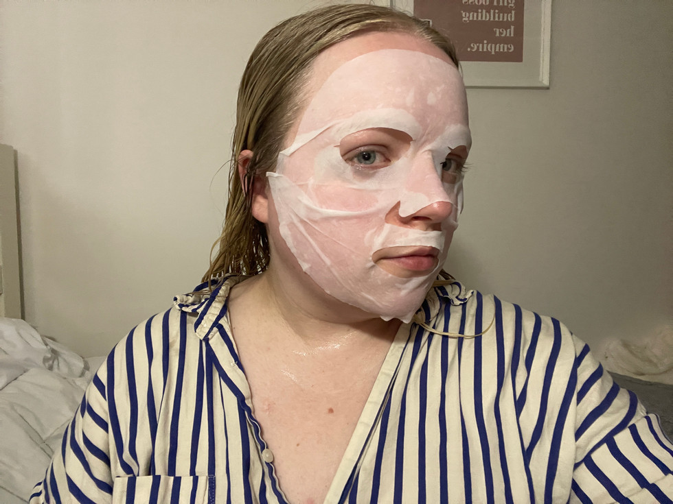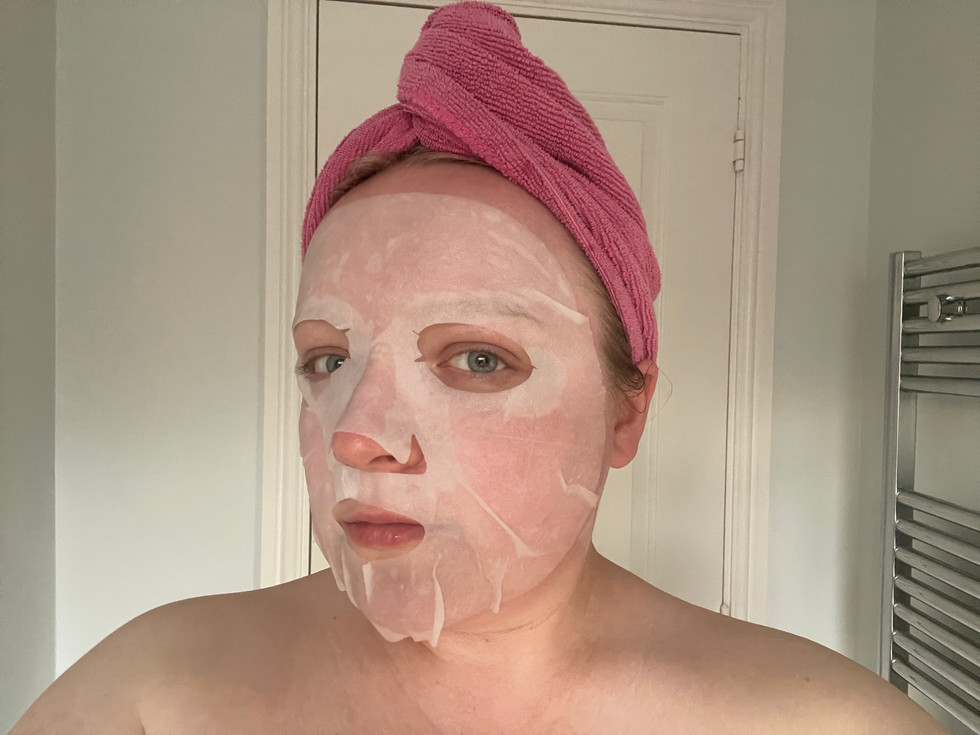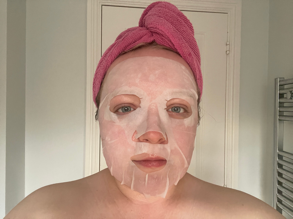 I managed to read a lot of my book whilst laying down with this mask on. I seem to look miserable in these pictures but it was a relaxing time.