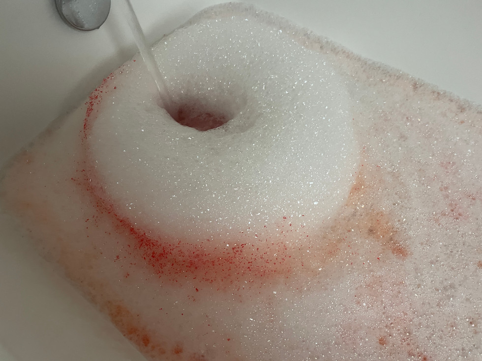 Crumble a little, a lot, or the whole thing under the tap as you run the bath. Climb in to enjoy fluffy bubbles and blush-coloured waters.