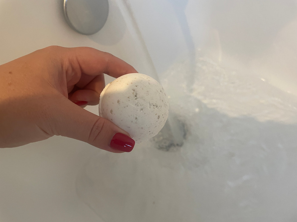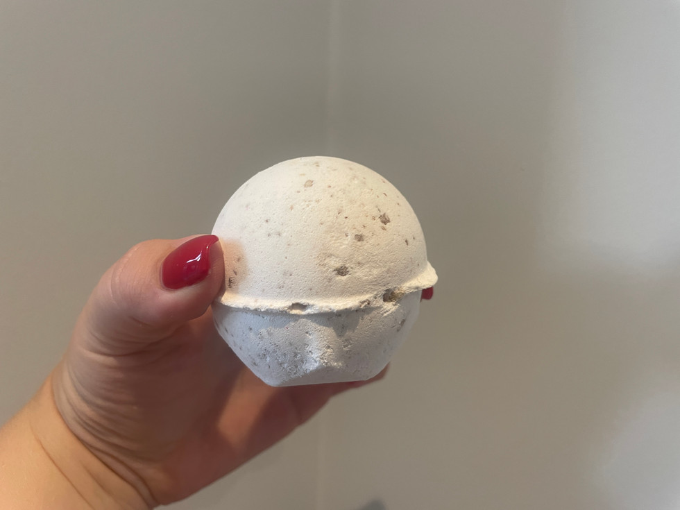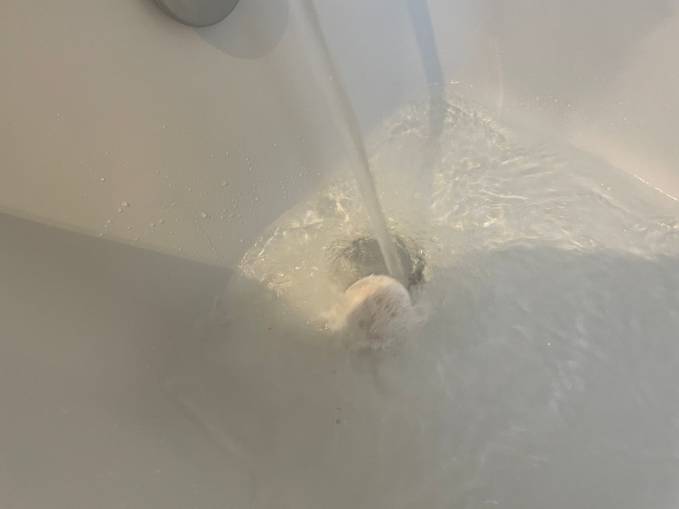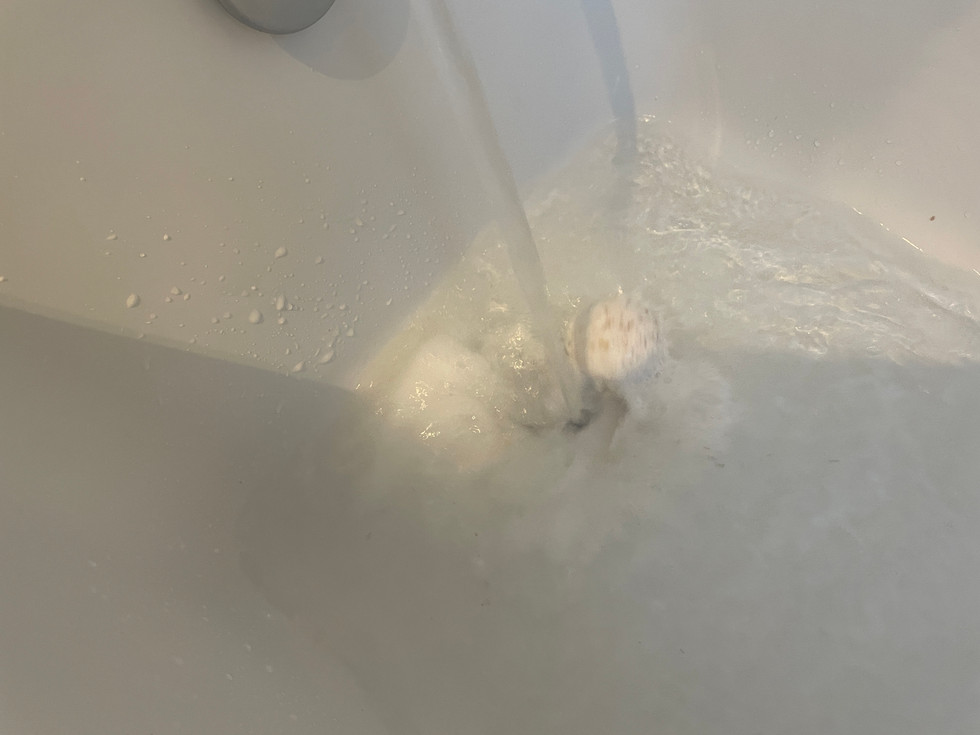 I have actually had this before when it was a bear shape but I didn't blog about it so here is one but ball form. You can see that once it has dissolved that there is oil throughout the bath which is really moisturising, the only thing that can improve is there be colour because the water was odd looking.