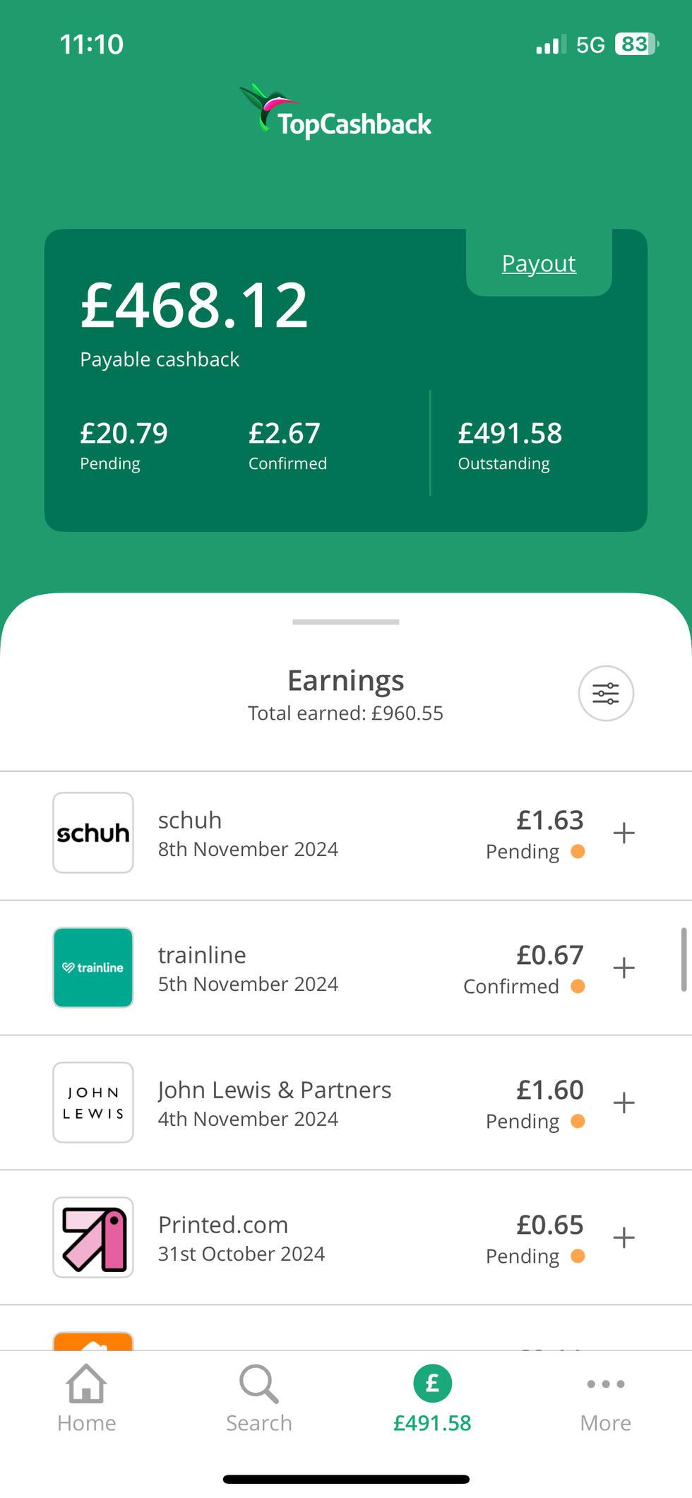 I have made £491.58 this year, currently can withdraw £468.12, still waiting for money to be confirmed and accepted in the pending section. I have managed to get money back from Ryman orders, sneak peek on a blog post coming soon but I bought Liverpool PJs for my family for Christmas and got cash back from it, my new Converse I got cash back from schuh, my recent trips I managed to get cash back from those trips on Hotels.com, there are so many companies on the website and app.