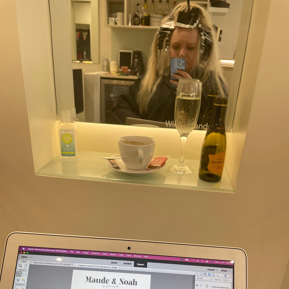 Whilst I had my hair done I was given a coffee which was much needed as I had to get all of my work done for Maude & Noah plus also a glass of Prosecco.