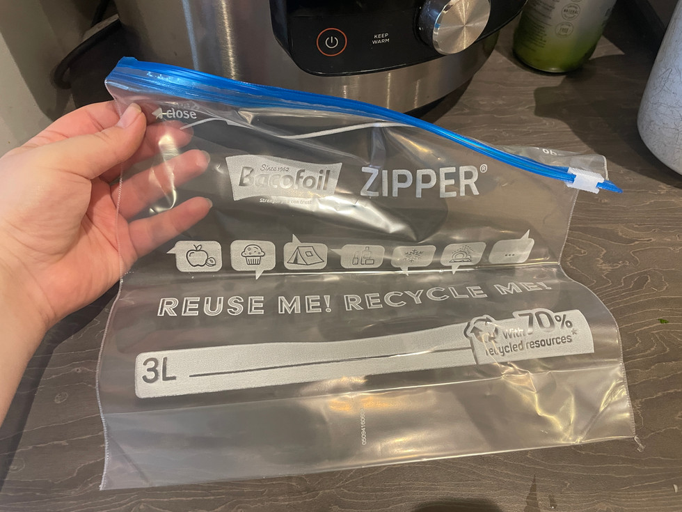 Step 1: I have a mass amount of zip lock bags, I love marinating chicken in them so I cut majority of the chicken fat off and any other bits and put the chicken into the zip lock bag.
