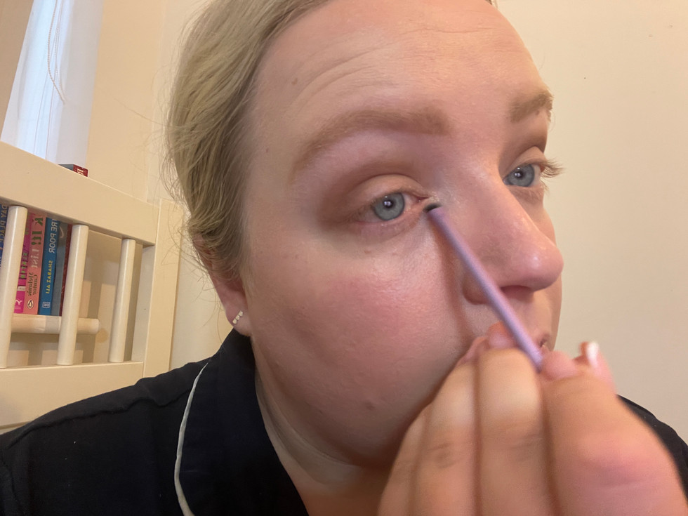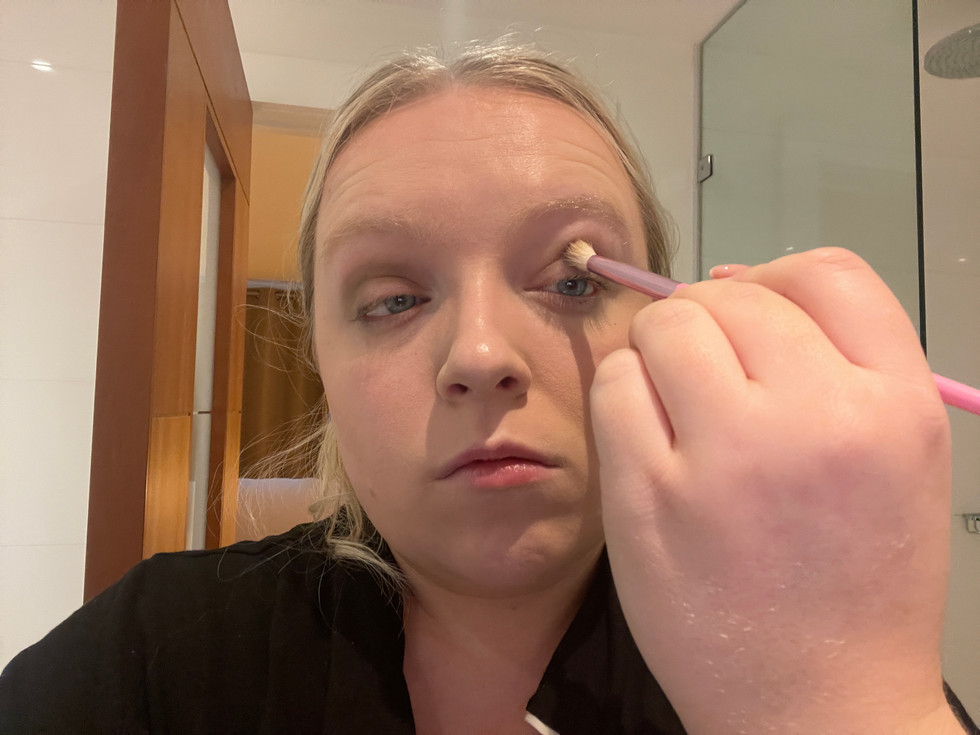 Shade 4: Using my Made By Mitchell ME5 to pat this shade onto the lid.