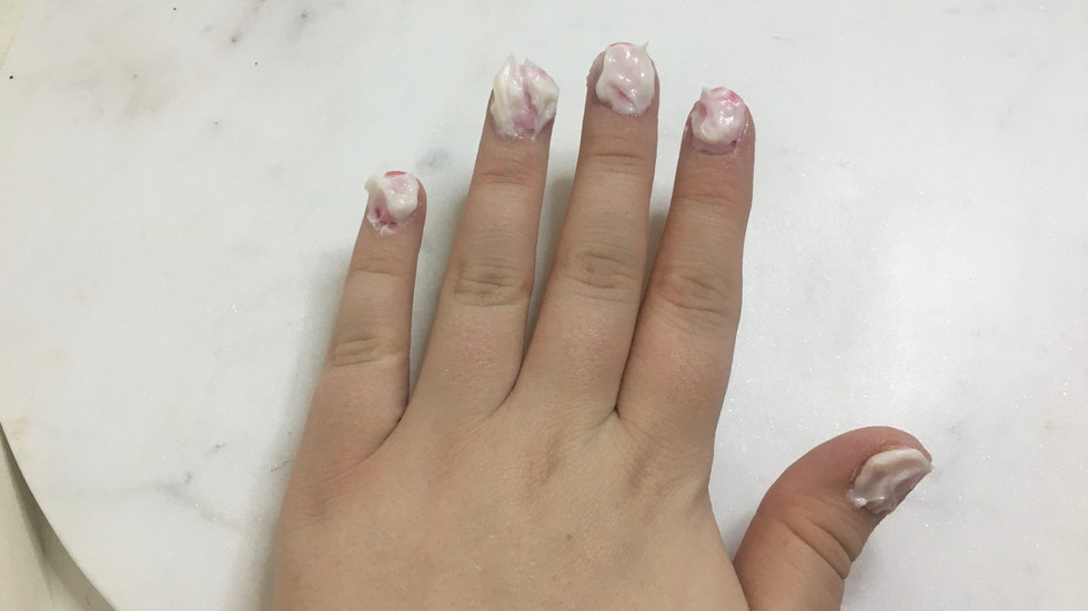 I had already lost a few nails but I did what it says on the website to remove this but when it came to the nail with glitter I had the massage a lot more cream onto the nail. Again I had to do this whole thing again once the colour had been removed because there was still the base coat left over.