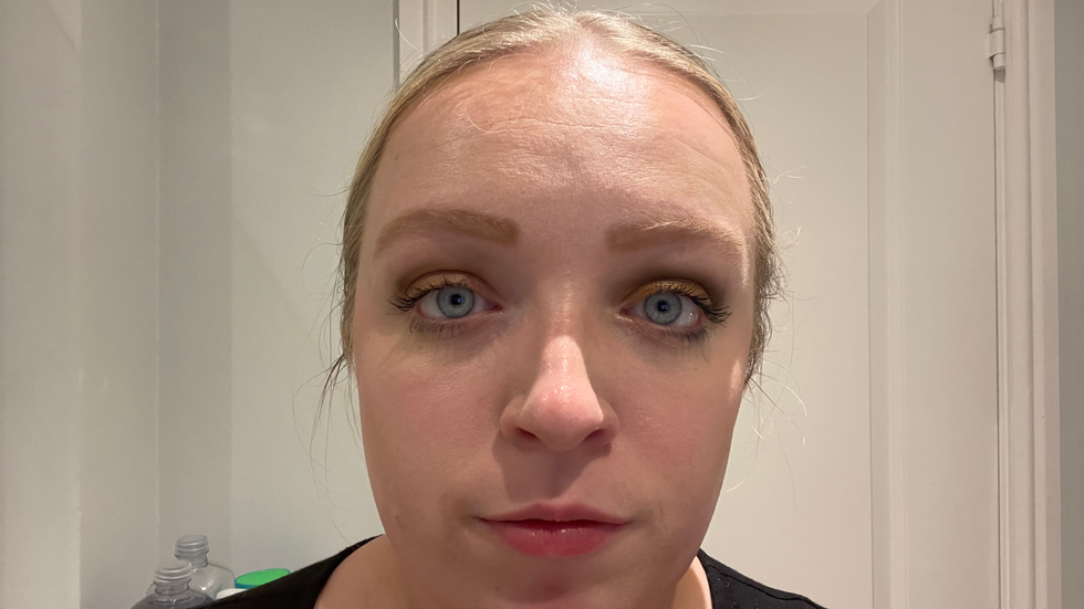 7:30pm: My right eye (left in the picture) looks very messy, smudged and just so bad.