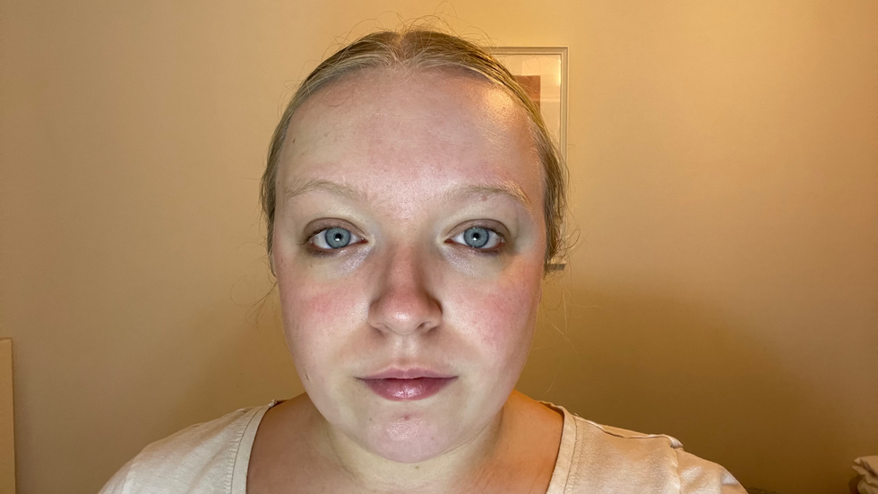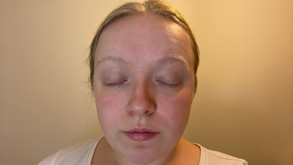 7:45pm: I forgot to take a picture of my eyes closed but the eye without primer has budged up in the crease.
