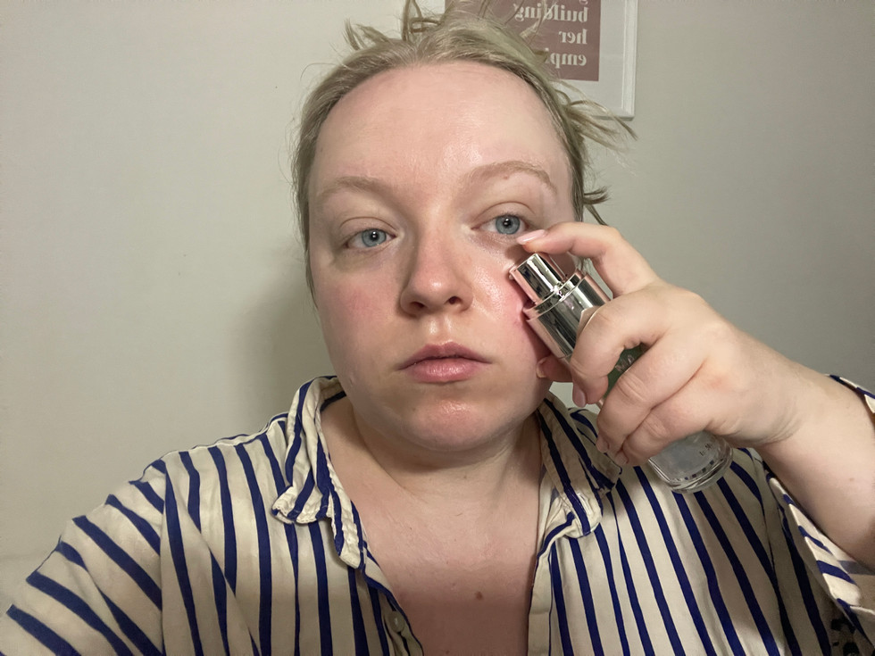 Bare face, only skincare.