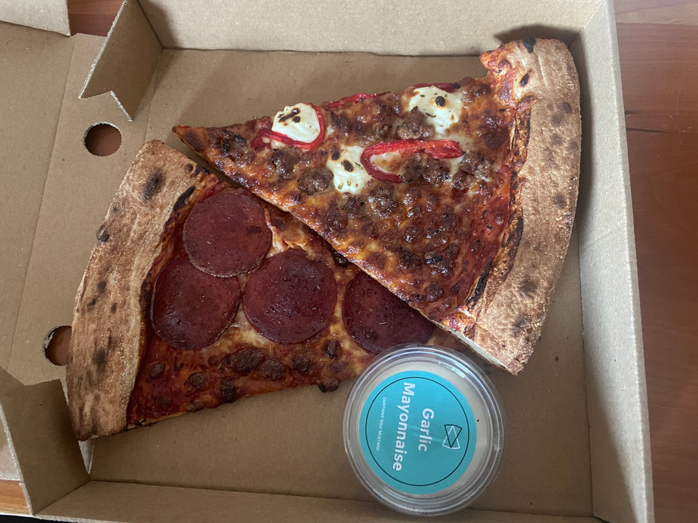 Breakfast: Starbucks caramel oat iced latte Lunch: American Pizza Slice: slice of pepperoni and a slice of fennel sausage Snack: JOE AND THE JUICE Oat 16oz Latte with an extra shot of espresso Dinner: Renshaw St. Food Market - Mong Kok braised beef brisket noodle soup