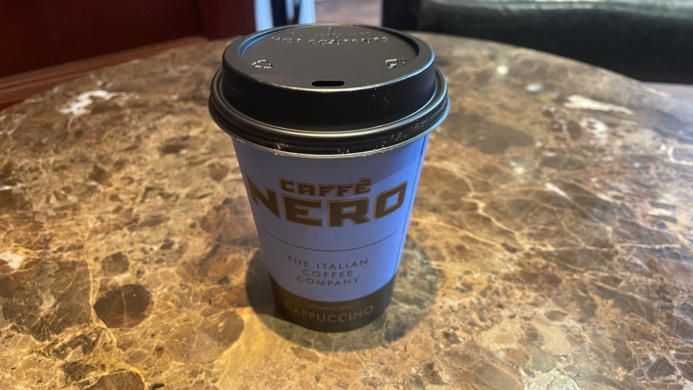 Breakfast: McDonald's bacon and cheese flat bread and a Starbucks almond milk cappuccino Snack: Caffè Nero oat milk cappuccino Lunch: Boots chicken and bacon caesar wrap, Peperami chicken roasted bites and a beer