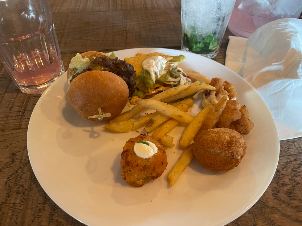 Dinner: Slug & Lettuce Sangria (Absolut Blue, nectarine liqueur, elderflower cordial, Corrida Verdejo white wine and Schweppes lemonade), Halloumi fries with sticky BBQ sauce, cheesy nachos and crispy calamari bites with a garlic & herb dip and lemon. All Bar One Peach Spritz (MOOSE Peach Botanical spirit, Prosecco and Fever- Tree White Grape & Apricot Soda) and The Cavern Club vodka orange, Harrisons Bar vodka orange.