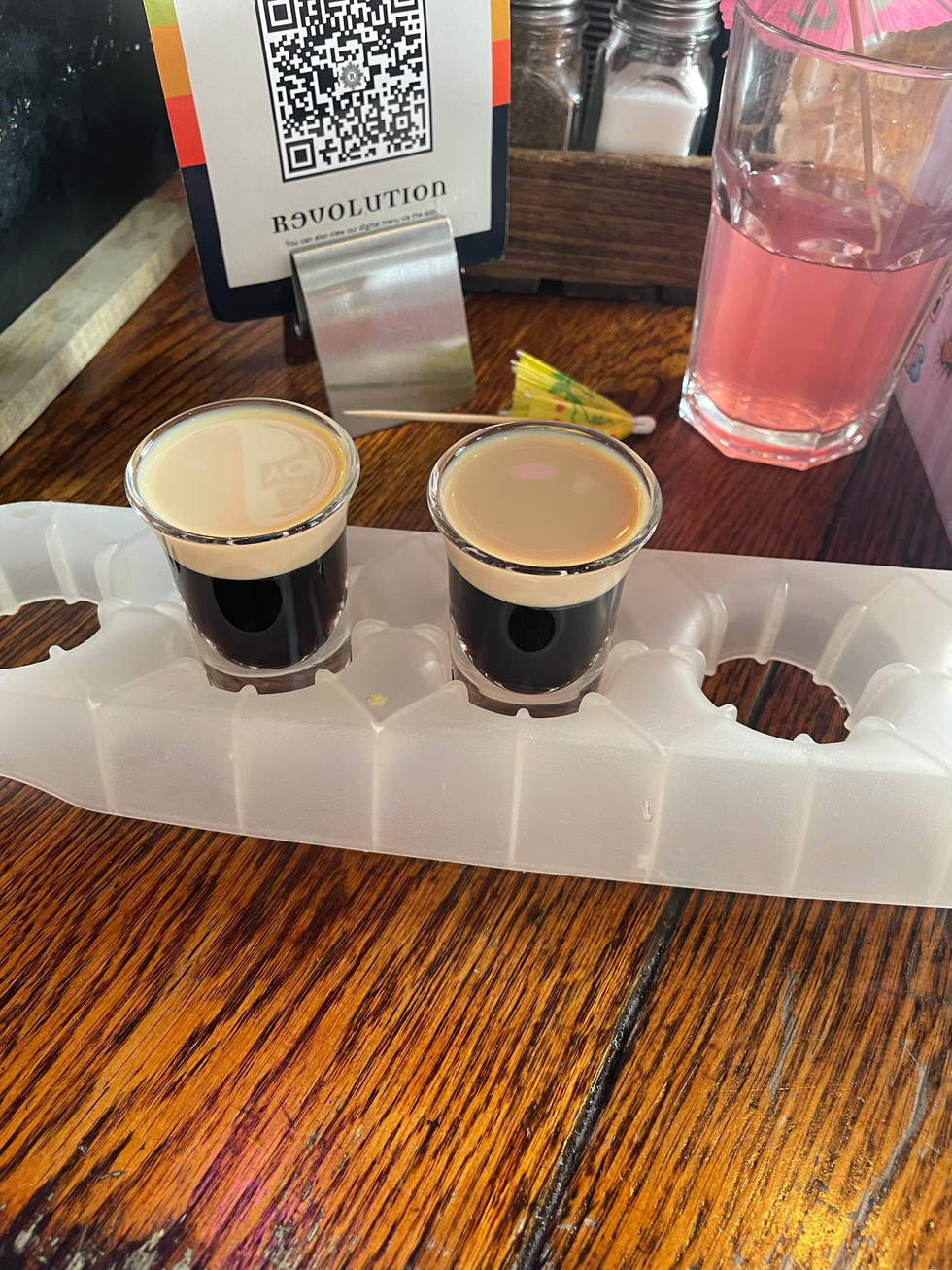 Breakfast: sugar free Red Bull Lunch: Revolution Bar Cocktail Masterclass: Mojito, Sex on the Beach, buffet food, Mean Girls cocktail, Baby Guinness Snack: vodka with orange at The Cavern Pub