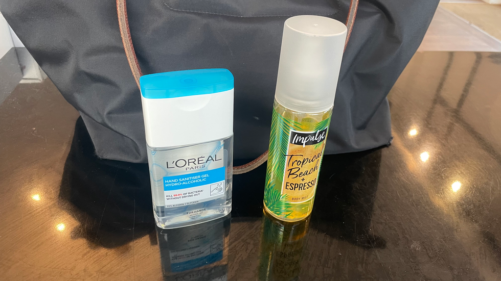 Now here is for the random bits so I had my keys (not so random), my tripod (I film behind the scenes of the business check out the YouTube channel here), hand sanitiser, body spray (in case I get sweaty and smelly), sunglasses, tissues, portable charger, AirPods and purse.